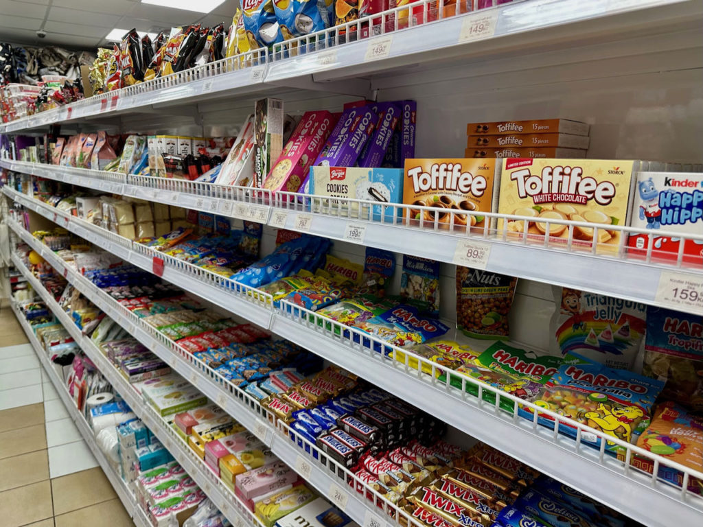Pochutiny a sladkosti: sušenky, chipsy, různé druhy sladkostí